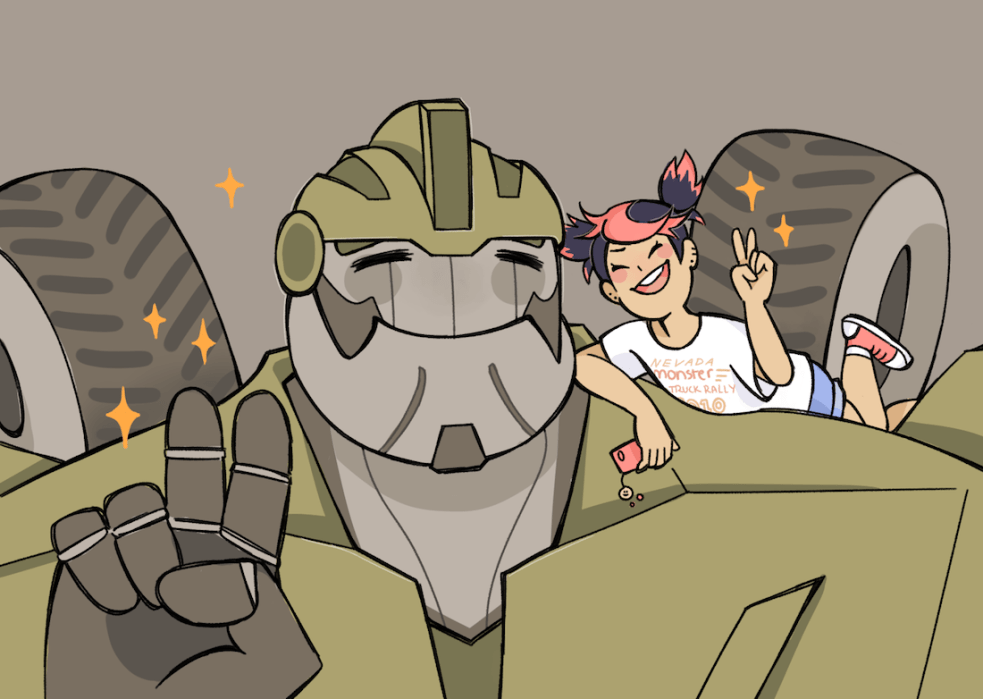 - Miko drawing Arcee in motorcycle form