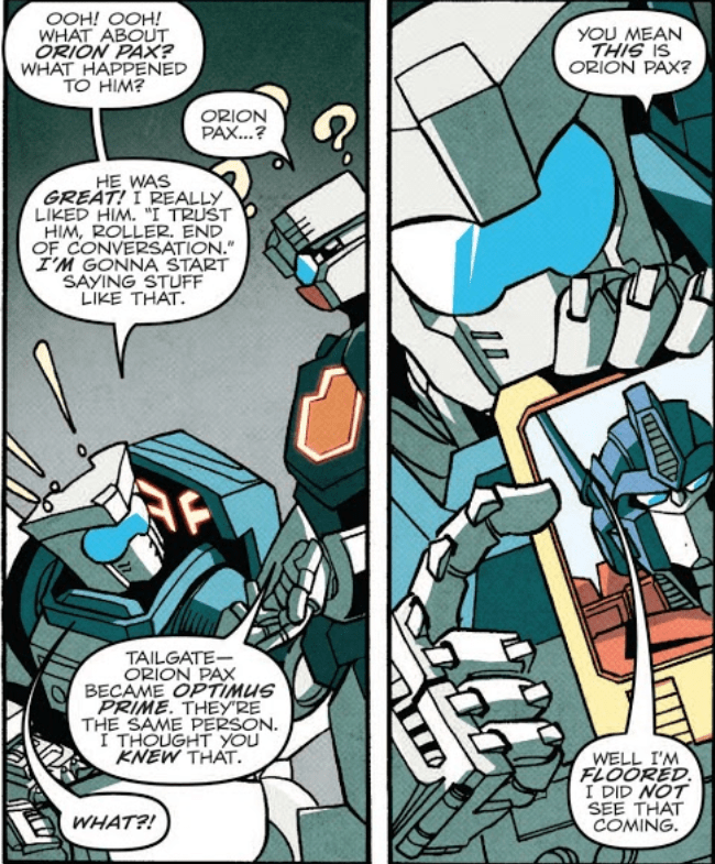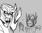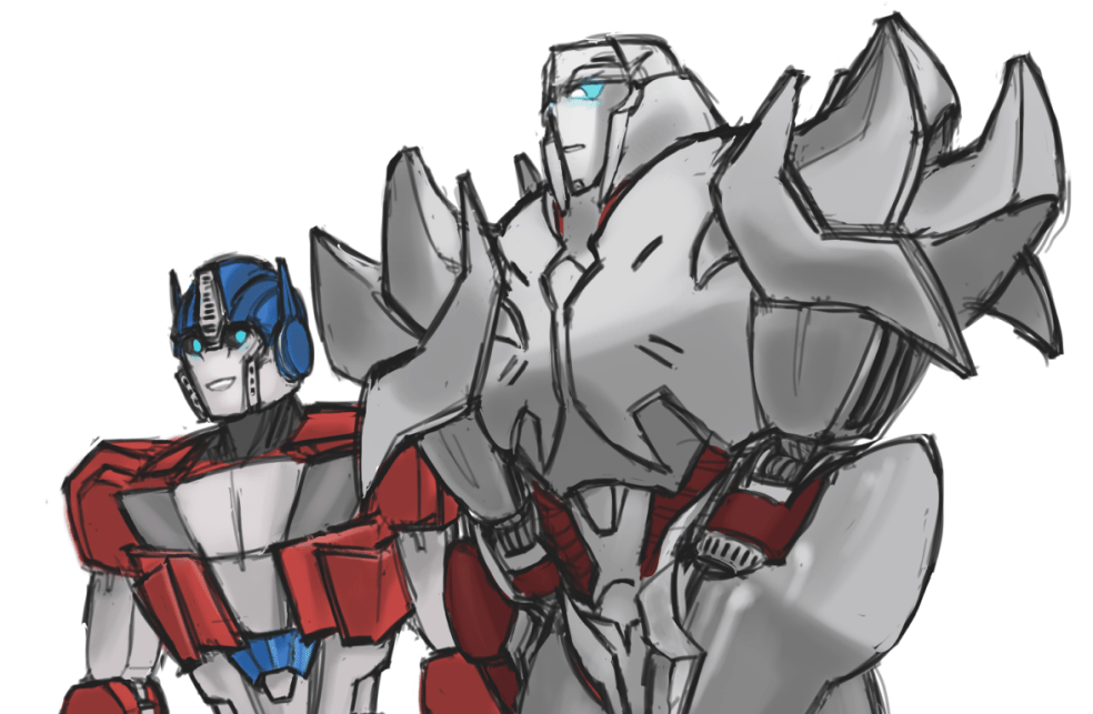 I don’t write MegOP a lot, so this was a nice challenge. I ended up choosing TFP because something I really, really like about Megatron in that series is that he seems to begrudgingly admire Optimus Prime, so I wanted to make the comic about that.