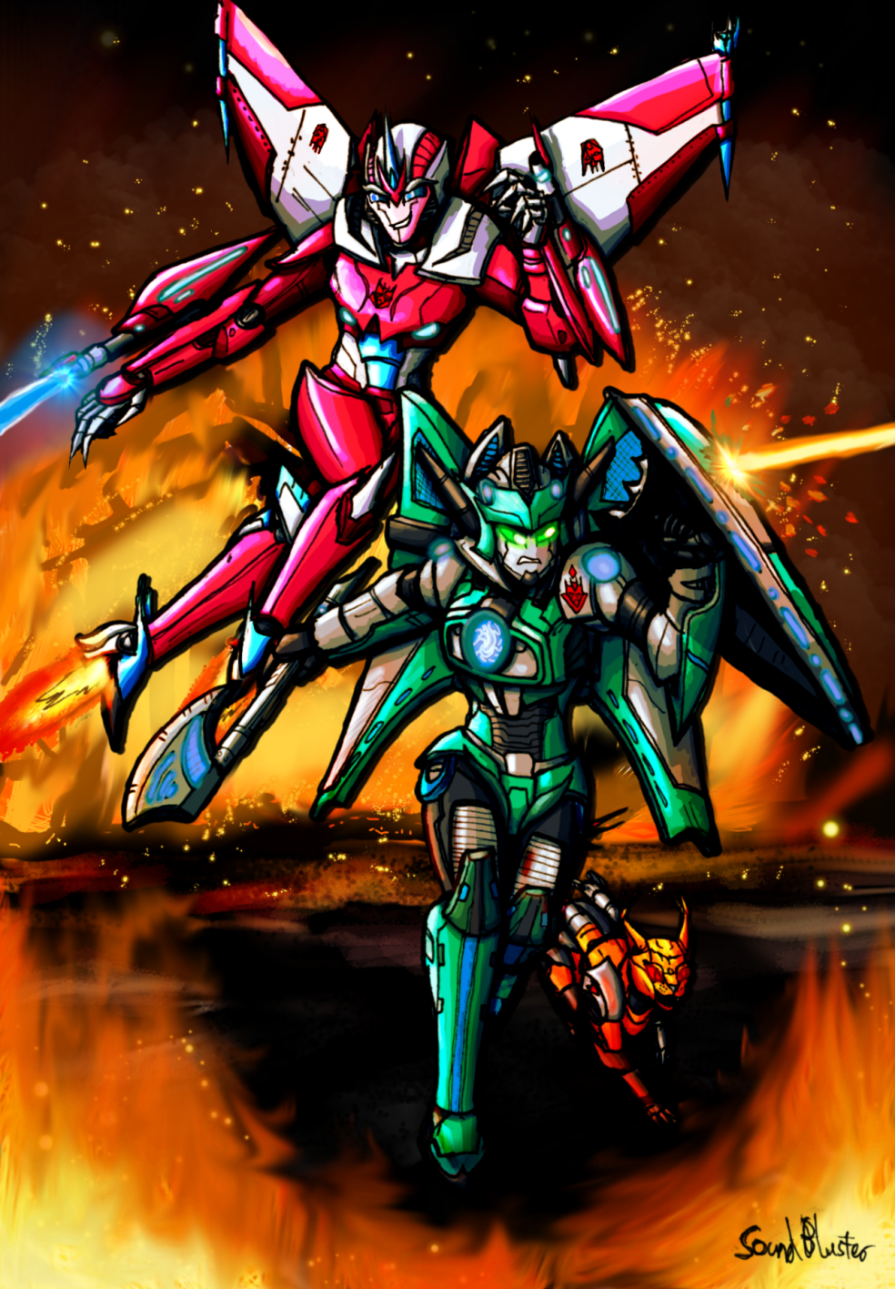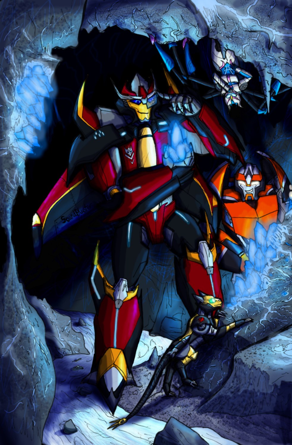 I’ve been drawing prime/aligned-verse shattered glass stuff again. This time featuring Starscream, Slipstream and Thunderblast.