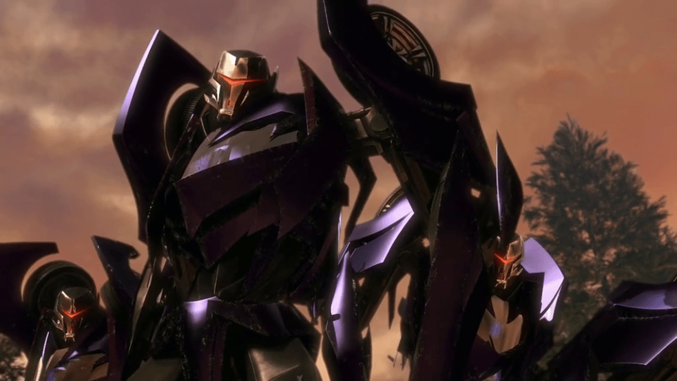 Some spoopy Transformers: Prime pictures for Halloween! A Terrorcon menaces Starscream, Knockout, and some Vehicons.